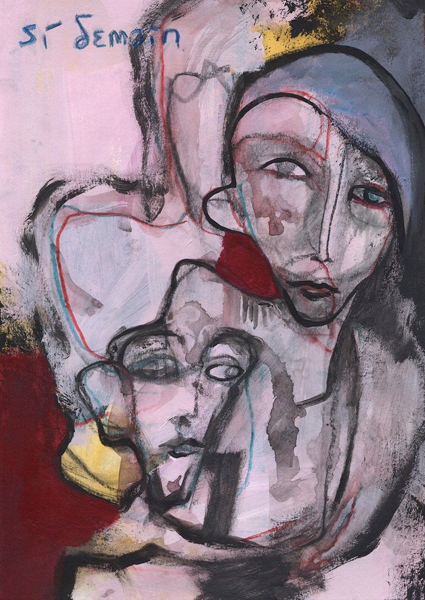 acrylique, encre, fusain et crayon, 21x30cm, février 2026